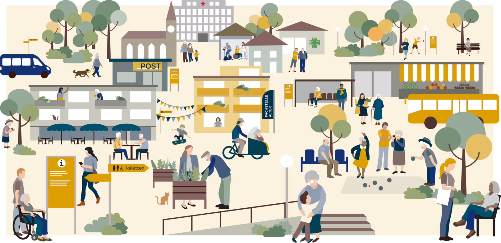 Es geht um viel: Der Lebensalltag von älteren Menschen findet in der Gemeinde oder im Quartier statt. Sie in Ihrer Rolle als Vertreter:in der Gemeinde schaffen mit einer partizipativen Alterspolitik die entscheidenden Rahmenbedingungen für altersfreundliche Umgebungen und ein altersgerechtes Wohnen und Leben. Mit der Umsetzung dieses Wegweisers mit partizipativen Elementen und dem daraus resultierenden Massnahmenkatalog bekennt sich Ihre Gemeinde zur altersfreundlichen Ausgestaltung von Sozial- und Lebensräumen.